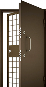 Толщина металла от 2 мм: дверь невозможно выломать или отжать за счет единой конструкции полотна и коробки, а также использования скрытых петель и противовзломных устройств.